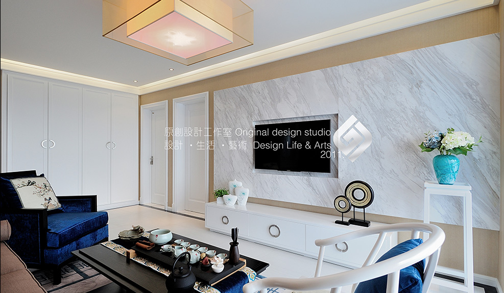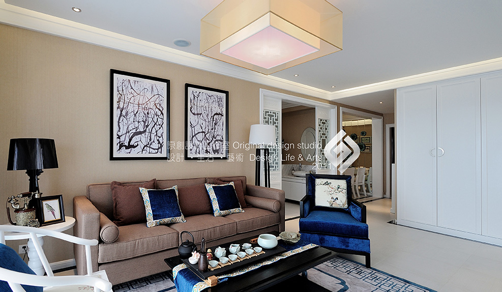 本案硬裝部分,將空間定義在現代中式風格,用簡潔的線條、溫暖的色彩,構成了舒適怡然、樸實清新的空間格調。